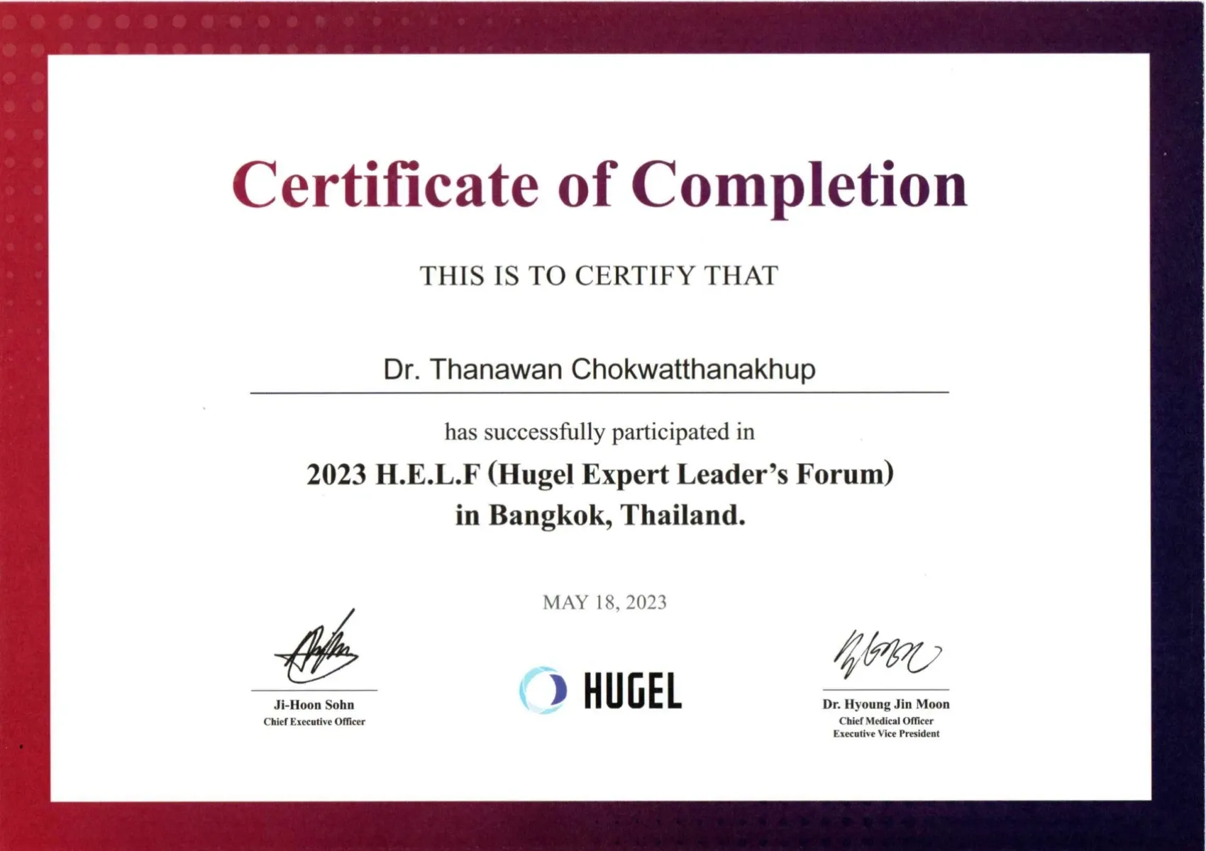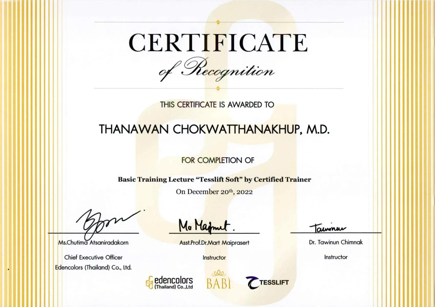 Certificate The Exclusive Ultraformer Ⅲ Training, Bangkok, Thailand
